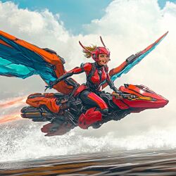 | '''Bike Mode''' || Compact form, wings retracted, wheels/skids deployed || Ground traversal, water-surface (hydrofoil), parking | |||